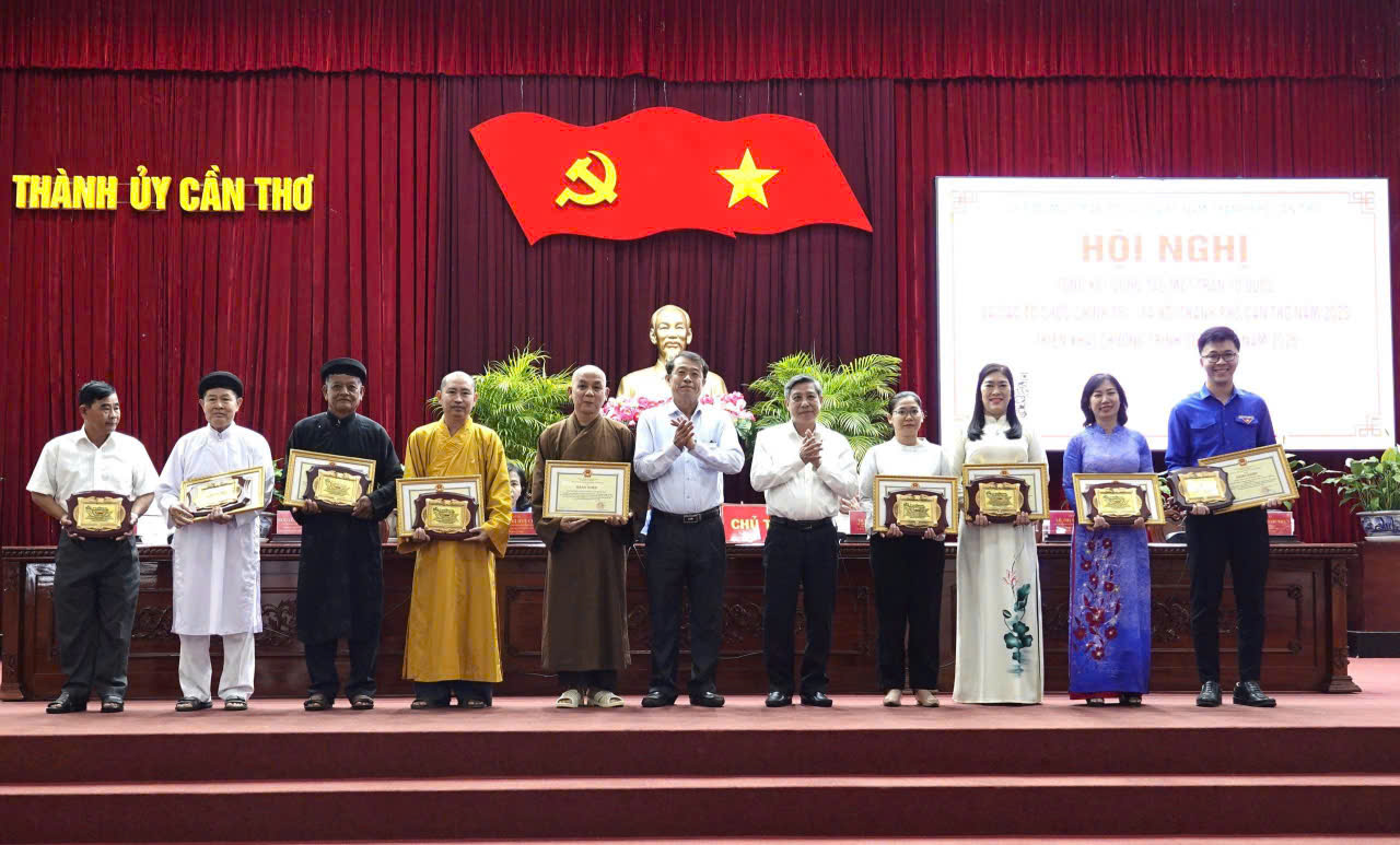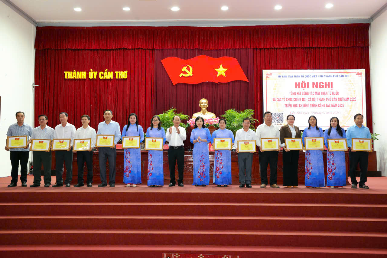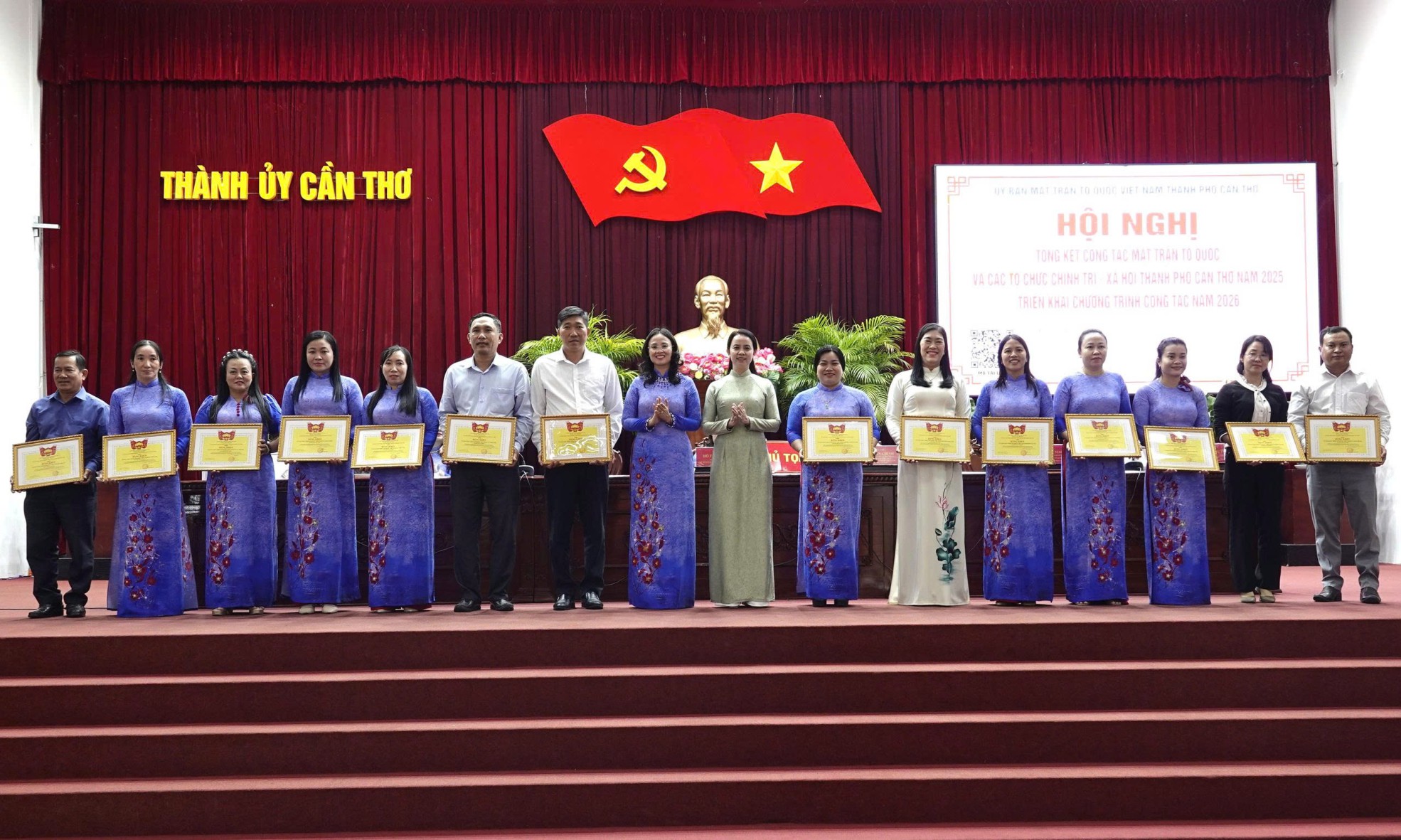 Tại Hội nghị, lãnh đạo đã trao tặng Bằng khen UBND thành phố cho 08 tập thể và 04 cá nhân có thành tích tiêu biểu trong thực hiện công trình phần việc chào mừng Đại hội; tặng thưởng Bằng khen của Ủy ban MTTQ Việt Nam thành phố cho 45 tập thể và 75 cá nhân đạt thành tích xuất sắc trong công tác Mặt trận năm 2025; 15 tập thể có thành tích tiêu biểu trong thực hiện công trình phần việc chào mừng Đại hội. Đồng thời đề nghị Ủy ban Trung ương MTTQ Việt Nam tặng thưởng Bằng khen cho 07 tập thể và 04 cá nhân đạt thành tích xuất sắc trong công tác Mặt trận năm 2025