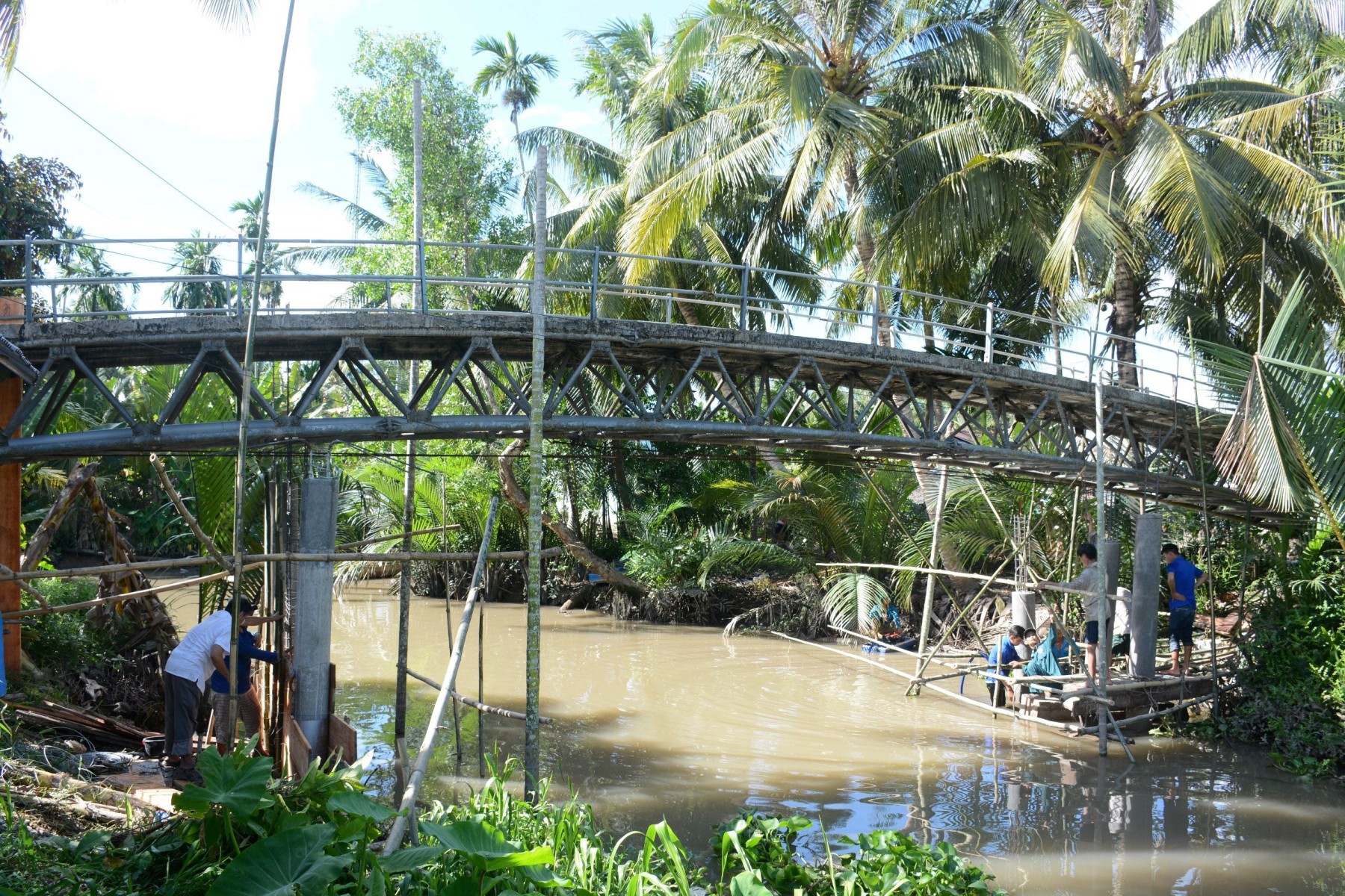 Đồng chí Hồ Thị Cẩm Đào, Phó Bí thư Thành ủy, Chủ tịch Ủy ban MTTQ Việt Nam thành phố thăm, hỗ trợ hộ dân bị ảnh hưởng do triều cường tại phường Long Mỹ