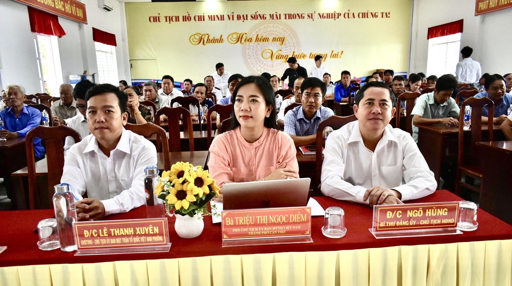 Bà Triệu Thị Ngọc Diễm, Đại biểu Quốc hội khóa XV, Phó Chủ tịch Ủy ban Mặt trận Tổ quốc Việt Nam thành phố Cần Thơ cùng lãnh đạo Phường Khánh Hòa dự hội nghị.