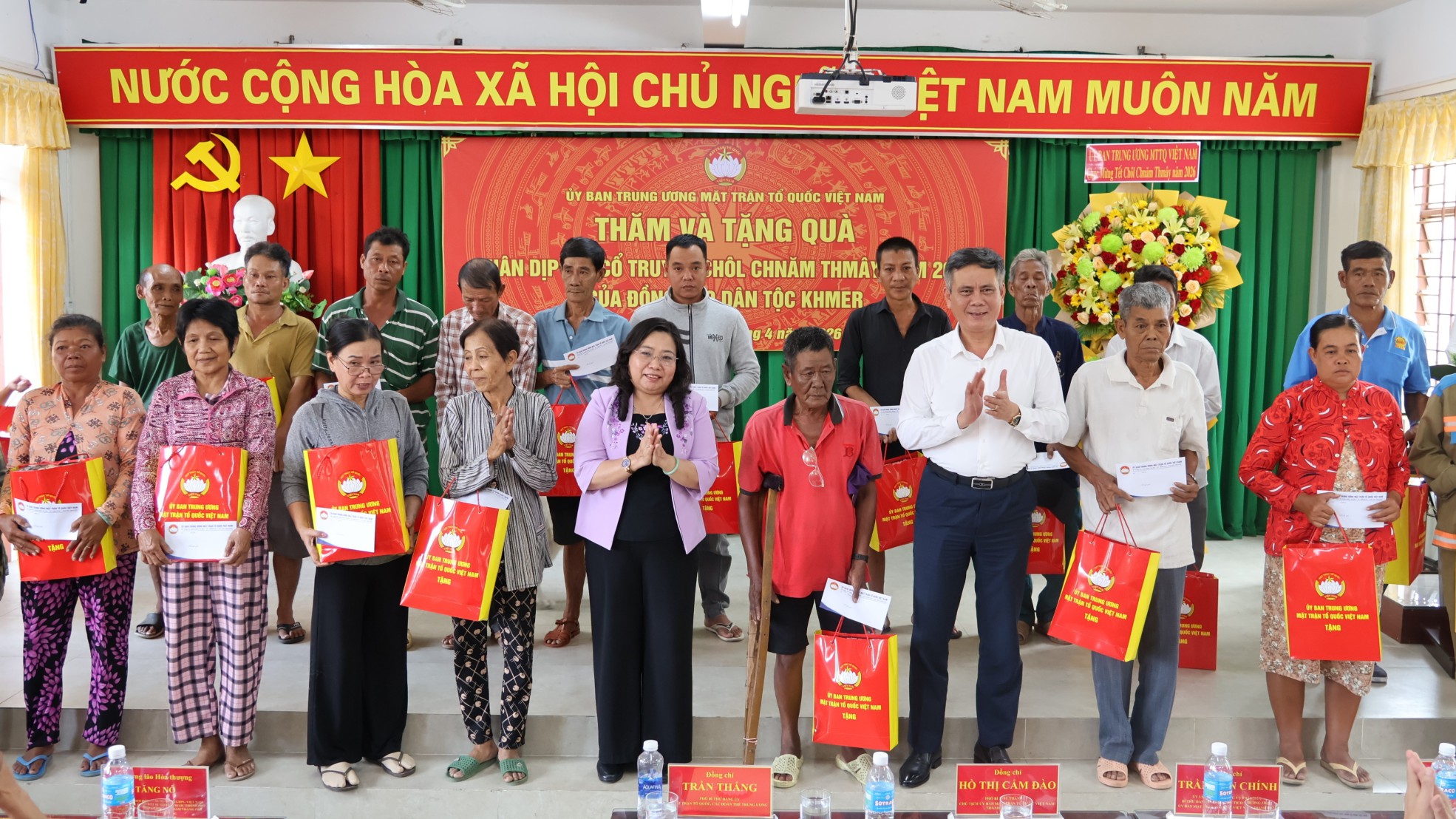Dịp này, đoàn công tác đã trao tặng 50 phần quà cho các vị chức sắc, chức việc, Achar và người có uy tín, ghi nhận đóng góp trong vận động đồng bào chấp hành chủ trương, chính sách, giữ gìn bản sắc văn hóa. Đồng thời, đoàn trao 100 suất quà cho các gia đình đồng bào Khmer nghèo, gia đình chính sách, góp phần giúp bà con đón Tết vui tươi, đầm ấm.