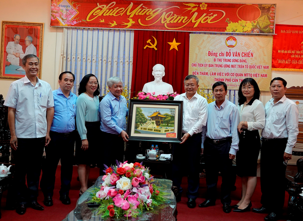 Do Van Chien, the Chairman of the VFF Central Committee, takes a photo with the officials of the VFF Committee of Can Tho City.